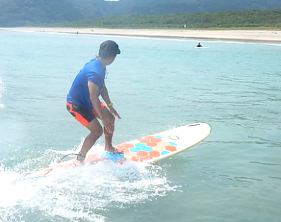 台風がさった後はしばらく小波が続いていくという予想に、良い波を期待していた方にとっては残念ですが、レッスンを受けられる方にはすごくラッキー! 小さな波の方がよりしっかりレッスンの内容をこなせるからです。