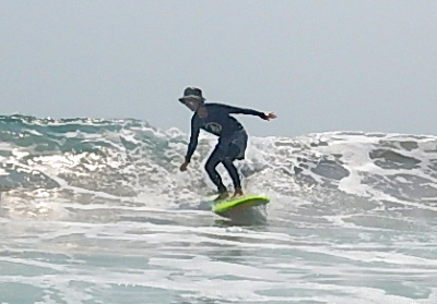 ご出産から子育てを経て、海にカムバックしたKさん。現役バリバリショートボーダーの時のサーフィンもちゃ~んと知っています(笑)今はご家族で海を楽しんでいます。より楽により楽しくサーフィンをするためのレッスン。