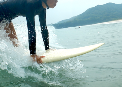 海が好きで、海を感じるためにサーフィンという遊びを選んだHさん。海に浮かんでたり、波と戯れるだけで最高だそうですが、いやいや、せっかくなのでサーフィンの楽しさをもっと感じながら遊んで欲しいです。