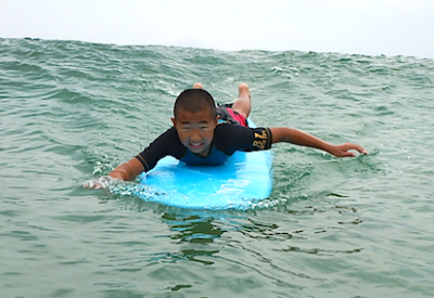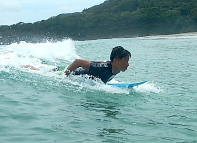 小学生Sくん。やってみたかったサーフィン!!お父さんと一緒に参加!!