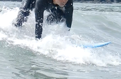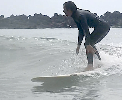 「こんなに楽に乗っていいんだ・・」 波を捉える回数も早いテイクオフを決める確率も上がったIくん。