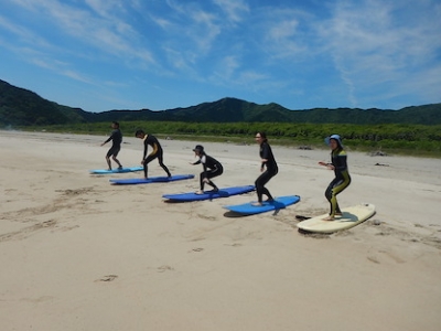 今年からサーフィンにトライし始めた3名さんと今日が初めての2名さんのレッスンです!!