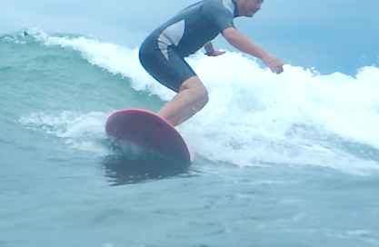 今回ブランクからの久しぶりのサーフィンとなったFさん。ブランクがあっても身体に染み付いた波乗りの動きは忘れる事はありませんね!!ショートボードのようにファンボードをコントロールしていきます!