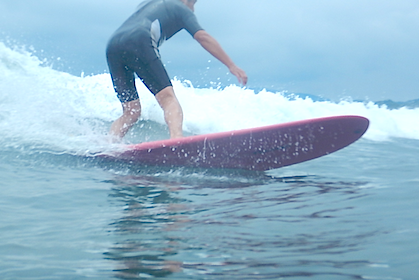 経験の分だけ完成したご自分の動きをお持ちです。その中にほんの少し改善点を意識的にサーフィンする事で、長年やってきた動きがほんの少し感覚が変わってきます。経験がある分意識されると結果がすぐ出られる場合も多い。Iさんも意識的にサーフィンし、モチベーションが上がっているようにみえました。