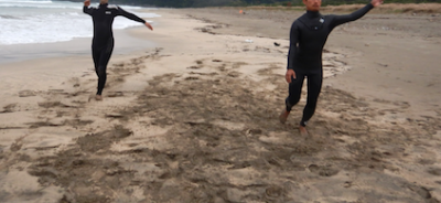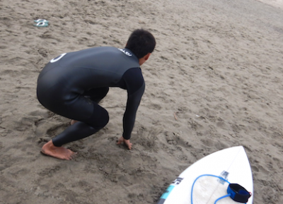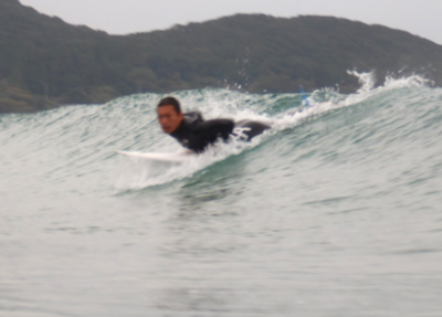 前回のレッスン以来のサーフィン。一歩一歩上手くなっているのは、裏の努力なんです。