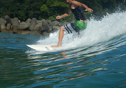 Jさん今回サーフボードのオーダーをご検討いただくということで、僕のお気に入り、DOMINGO ロングボード MODEL: quickerに乗っていただきました!