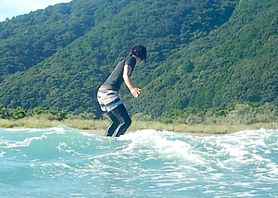 プロスノーボーダーのAちゃん。雪の上と海の上の違いに難しさはありますが、乗ってしまえば安定感は半端ないですね。重心が乗っているんですよね~ まっすぐボードの中心に。さすがプロスノーボーダーですね~  ただテイクオフに関してはなかなか難しい。ここを練習すれば大きくステップアップできそうです。今日やった練習を陸でも反復練習してみてくださいね!
