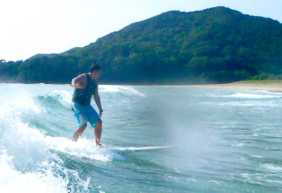 サーフィン合宿中のTさん。今回2回目のスクールです。