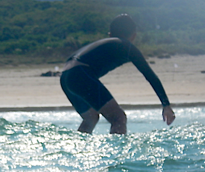 後半には自分で波に乗る練習もしていただきました!この急角度の斜面でも恐怖心よりもワクワク感が優っています!