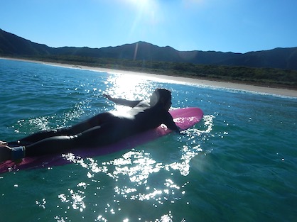 テイクオフで足が前に出なかったIさんですが、陸トレ実践後、軽~くテイクオフしロングライド!良い感触をつかんで次回のレッスンに続きます!次のサーフィンがまた楽しみになって来ましたね!