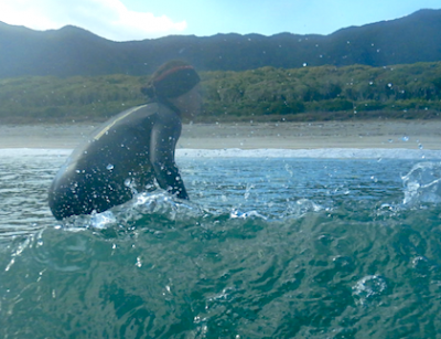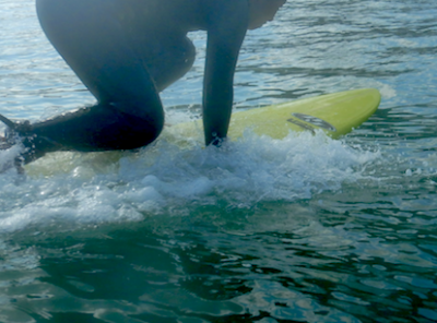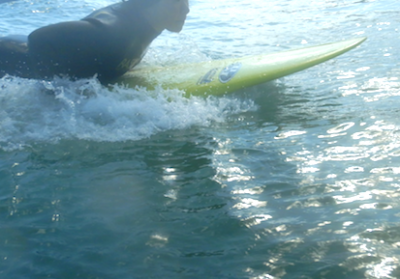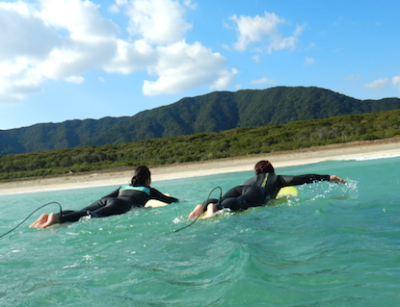 サーフィン経験5回目。初めてのパドルトレーニングのYちゃん。どの筋肉を使うかがわかってきてからはボードが進み出してきましたね!!