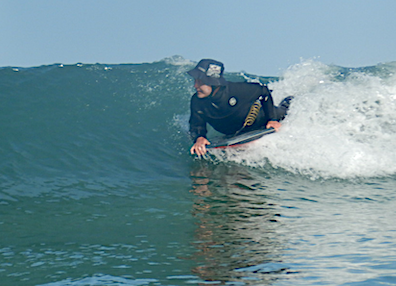 1つは波のチョイス。無駄に追いかけたり悪い波を捕まえず、可能性のある波をチョイスする練習。これから長く波乗りを続けていく上で、無駄な体力の消耗は避け、楽に波乗りをしていくというのは必須条件。