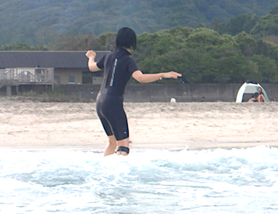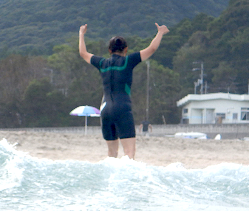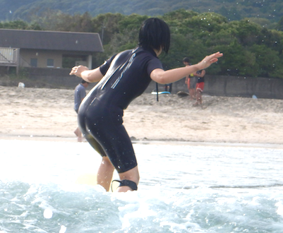 海になかなか来れない環境の中で、年に数回レッスンでサーフィンを楽しむKさん。
