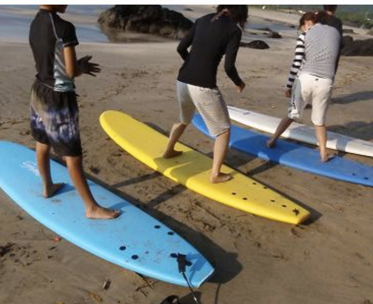 前回のスクールでは波に乗る楽しさを十分知った3人さん。