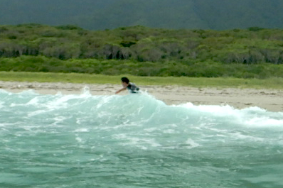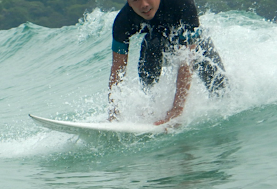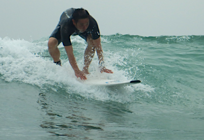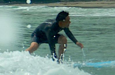 スポーツ経験もほとんどないらしいのですが、たった3回のレッスンですでにうねりから自力でテイクオフしてしまいます!