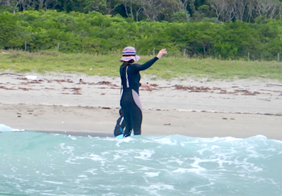 サーフィンには挑戦したが、まだテイクオフしたことがないというTさん。