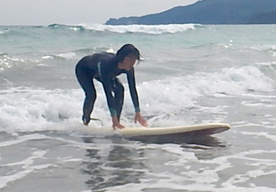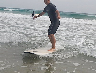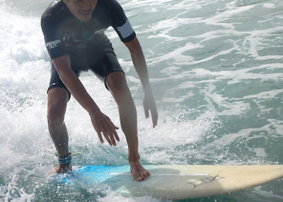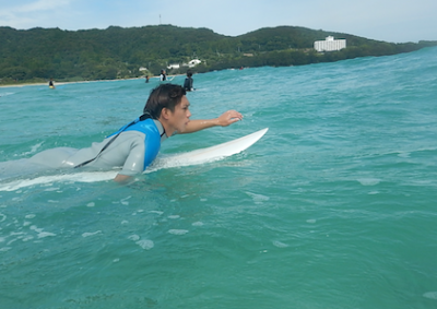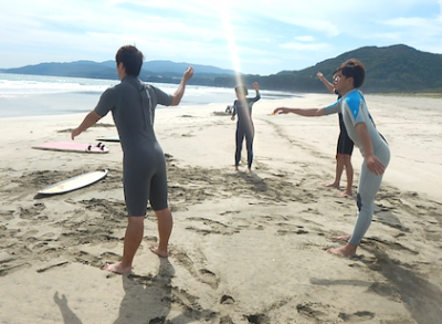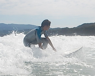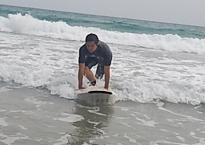 今回初めてのサーフィンでテイクオフを成功させたMくん。これまでのスポーツ経験からか、基本の大切さを知ってそうです。