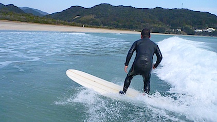 うねりからテイクオフ!波の斜面をすべることができました。