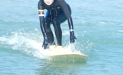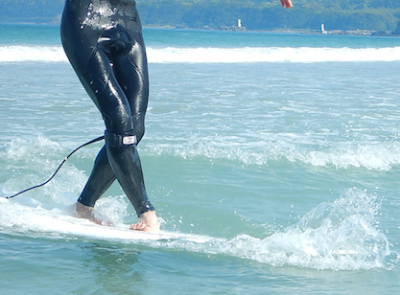 テイクオフ動作をより軽く早くする練習で波の上でもテイクオフが早くなってきました!!