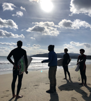 サーフィンを始めた時からその成長に関わらせてもらってきた若者3人。