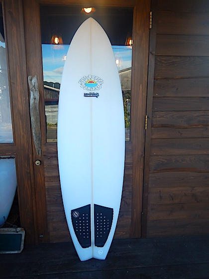 以前乗っていたのは浮力が強いクラシックなツインフィン。今回はUくんのいまのサーフィン、身長体重、1年後のレベルを見据えた感じでシェイプしてもらいました。ここからレベルを上げていくためのボード。1年後2年後上達しても対応できるボードです。