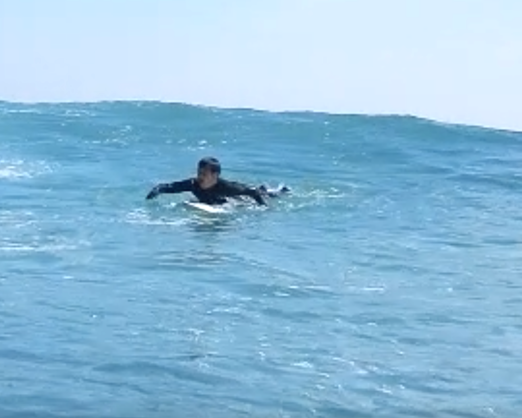これまで無意識に呼吸を止めて頑張っていた自分に気づき、ふっと力が抜けた瞬間、パドリングが驚くほど滑らかになり、楽に進むようになりました。心にゆとりが生まれたことで、波に乗っている時間がこれまでにないほど心地よく感じられました!