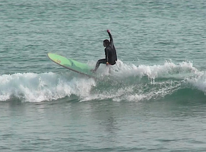 予想以上にボードが動いていたのとシングルフィンのボードの走りを見てもらえました。