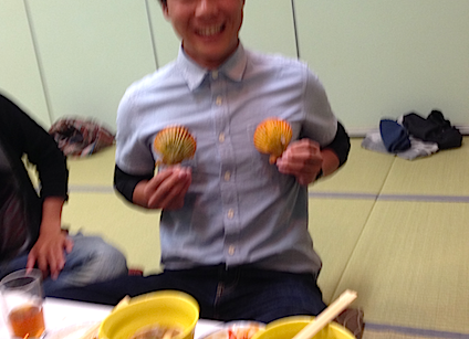 土佐清水名物、長太郎貝を悪い先輩から渡され、何の事かもわからず「武田久美子」をやらされたシャイな19歳 ituki 。これにはみんな大爆笑