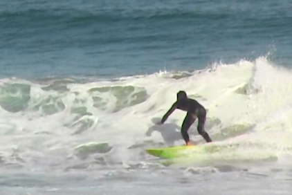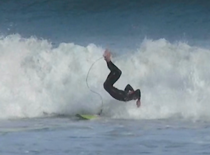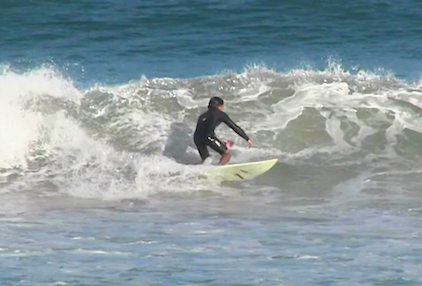 このレールを使ったテイクオフからのボトムターン! サーフィン歴半年でここまでできれば上出来!!