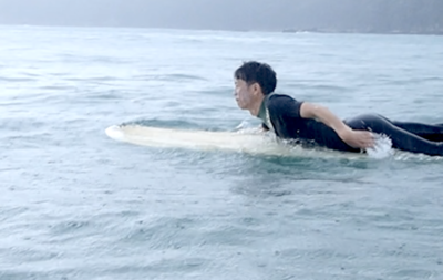サーフィンを見ると明らかに上達し、 海から上がった表情からは、何か掴み取った自信のある 表情が見える。