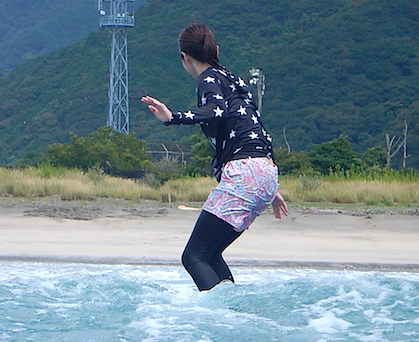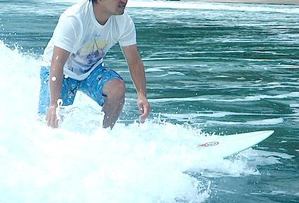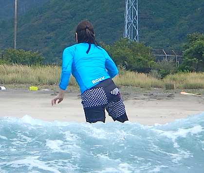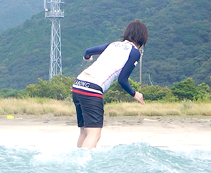 前半お二人に出遅れましたが、慣れてしまえばこのライディング!軸もまっすぐできれいなフォームで波に乗られていました!