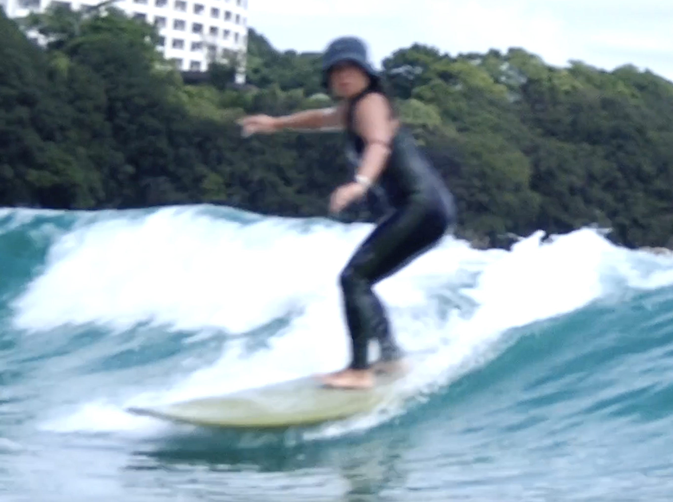 パドリング、波のチョイス、タイミングが 良くなり、コンスタントに波に乗れるようになってきた旦那さんのNさん。