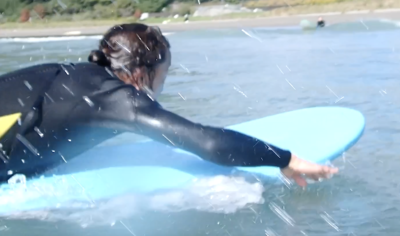 はじめてのサーフィンで、そう簡単にはうまくいきませんが、少しずつ形になってきて、自分で数本 波に乗ることができましたね!!