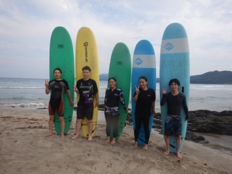 今回はややタイミングを合わせづらい難しい波でしたが、徐々にコツをつかむと、それぞれにロングライド!今回もサーフィンを楽しむことができましたね!