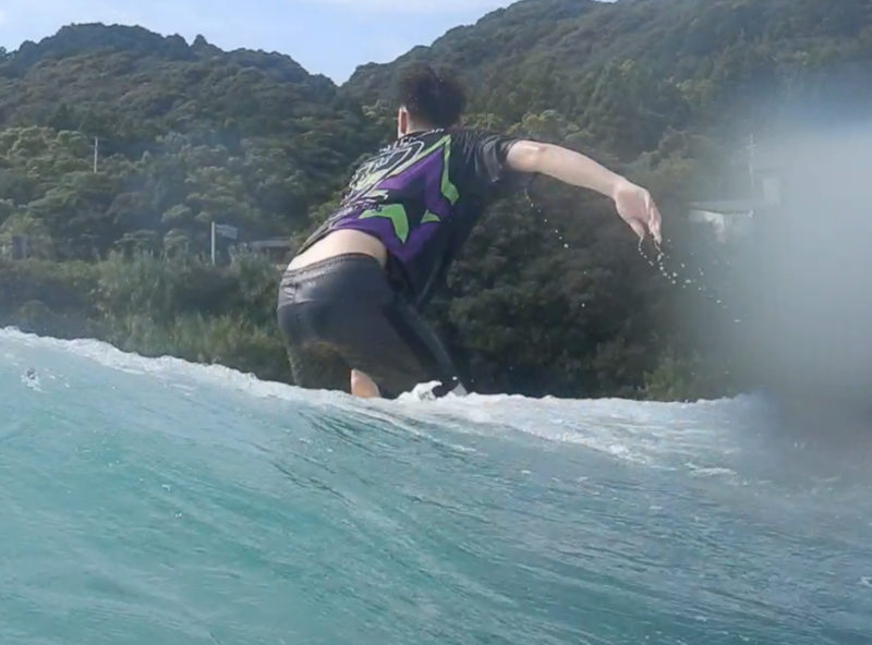 今回波が難しく、時折打ち寄せる台風のセットに体力を削られながら、思うように乗れていませんでしたが、ポジションさえ合わせてあげれば、今回も完璧にテイクオフ!安定したライディングを繰り返されていました!