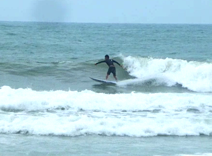 10月のコンテストに向けてのレッスン、というよりも、今の基礎レベルを上げる事を選んだOさん。癖のあるビーチブレイクに加速のタイミングがとれず苦戦。自分の本来の動きがなかなか出せない中、1本ハードに板を返すかなりいいフィニッシュが決りましたね!このボトムターンはよい波でサーフィンしてきた証! 大きなフィニッシュも出せる!そのターンからのリッピングを変化のあるビーチブレイクでもコンスタントに出すための基礎的な動きの練習をしていただきました。