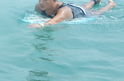 午前はこれまでもやってきたパドル、ポジション取り、テイクオフ動作の練習をみっちりやっていただきました!