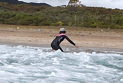 乗ってしまえば安定感抜群のIさん。テイクオフするまでの行程をまた練習してみてくださいね。次はクリーンな波でスクールしたいですね。またお待ちしています!
