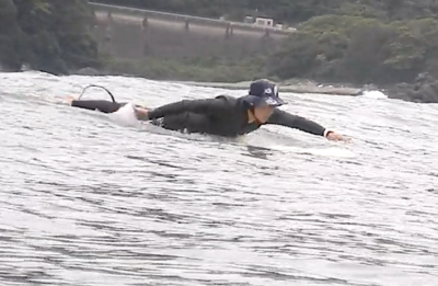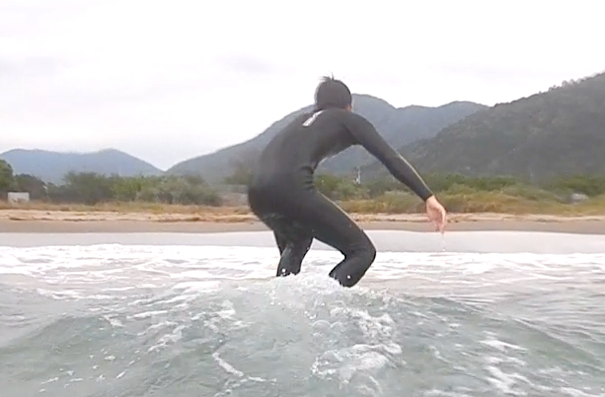 想像通りのスピードで上達していき、 後半にはパドリングし、 波をとらえ、 立つタイミングをご自身の体で感じ テイクオフし、ロングライド!