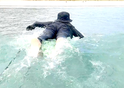 オーダーしてもらったボード を想定し、8.0から7.0のソフトボードに乗り換え、 短くなった分精度の 高い基本動作をもう一度練習!