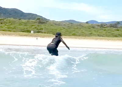 その動きが完成してくると、これまでより も短いボードで、自分で パドルし、テイクオフ、そして安定したまま、ロングライドすることができました!!