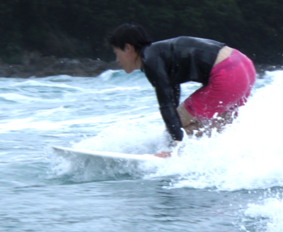 今回の課題にもトライ!! 難しい波の中、意識するのは難しいことですが、今回の陸でやった身体の使い方のイメージを少しづつ海にリンクさせて行きましょう!!