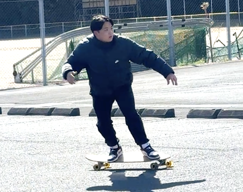はじめてのスケートボードで、 不安定さに力が入って思うような動きができませんでしたが、徐々にスケートポートになれ、最後には良いフォームでターンする感覚を掴みました!