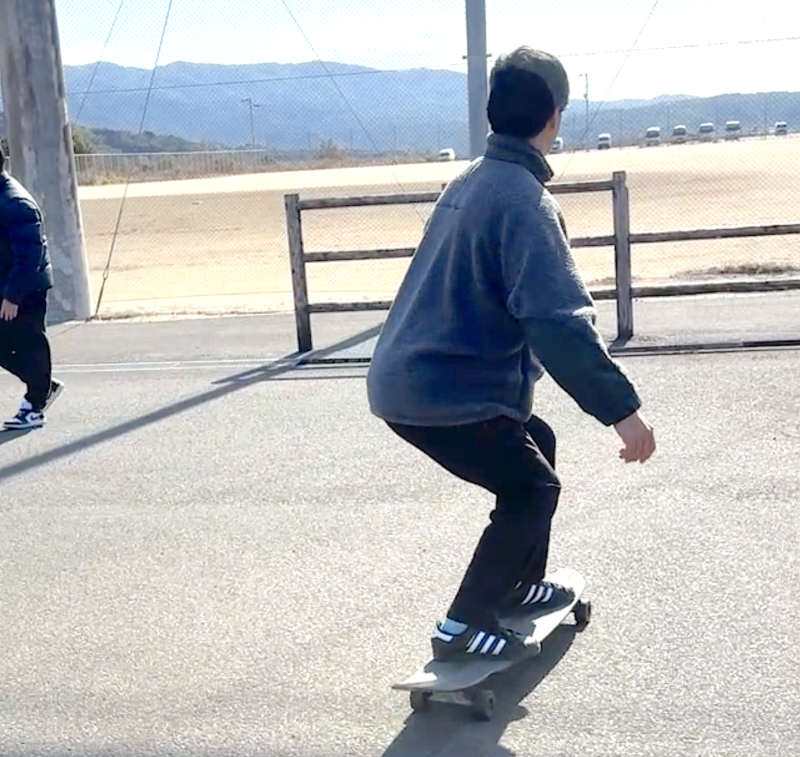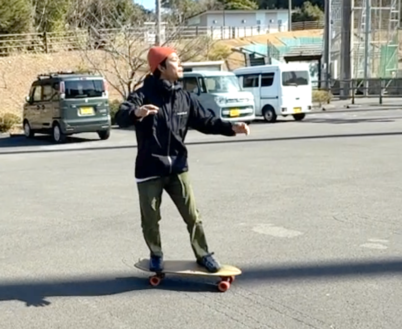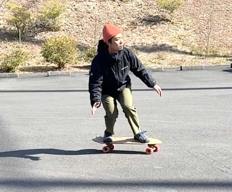 はじめてのスケートボードながら、良い感じで、安定して、重心を乗せられるようになってきました!
