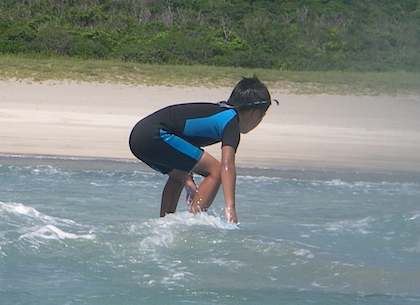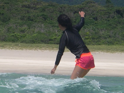小学生Kくん。お父さんとサーフィンしているので自力でどんどんトライし、1本目では曲がってみせてくれました