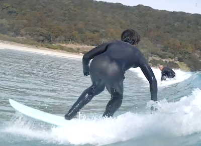 今回の久しぶりサーフィンにも関わらず、前回のレッスンの課題をしっかりと意識してきていて、いきなり良いライディングをしていました!