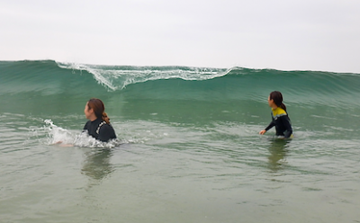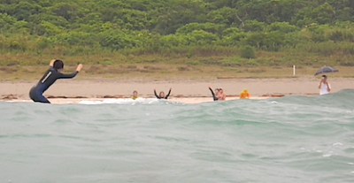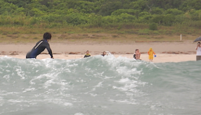 レクチャー後にボディサーフィンを初体験!!波の力のある場所や、どこでどうやって乗ればうまくいくかを体で体験!