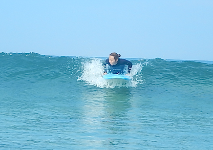 今回はボディサーフィンからスタート!kyu頑張る