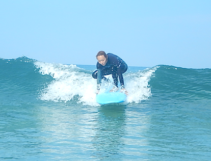 2日間のレッスンの中で自分で波に乗れるようになってきたNくん。一通り波を捕まえる為の動きから、テイクオフまで感覚が掴めましたね!