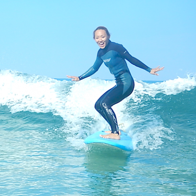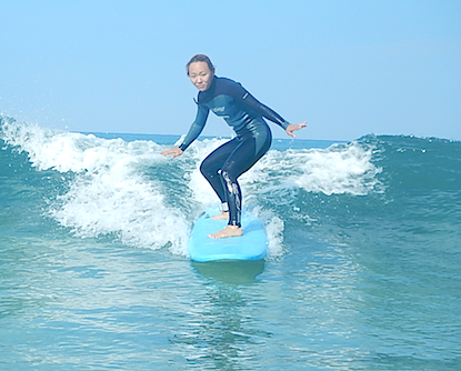 以前もサーフィンは体験してもらったお二人。今回からはこれから本格的に自分で波に乗る練習を始めていただきます!